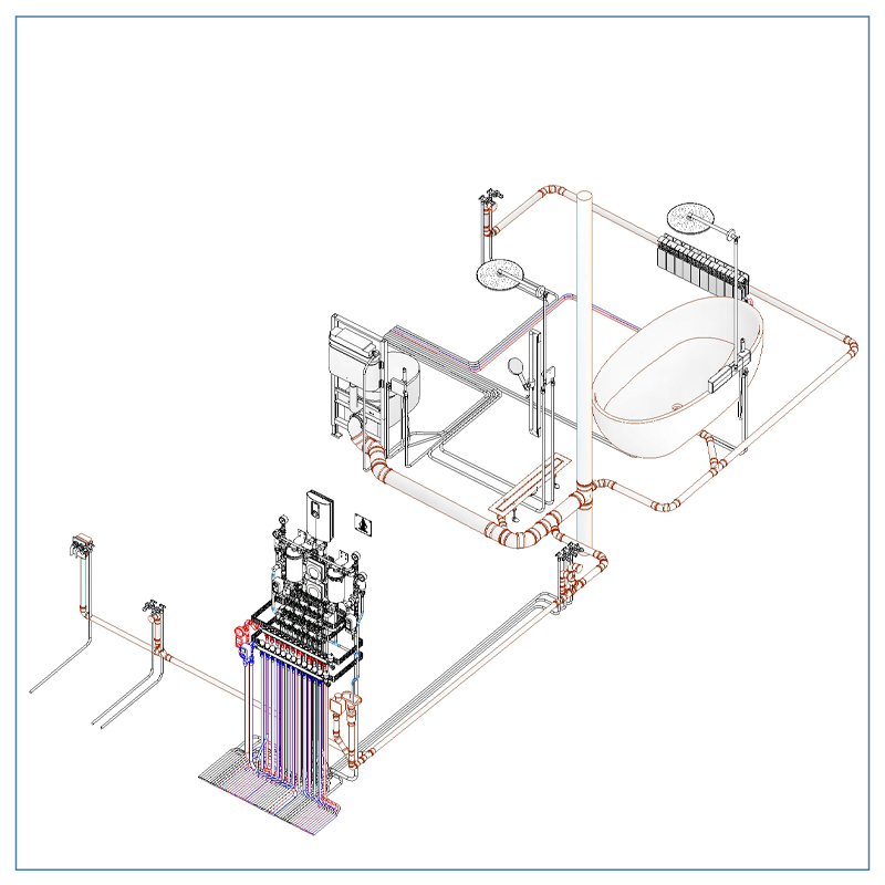 Проектирование систем отопления, водоснабжения и канализации охватывает распределение и расчёт трубопроводов, создание эстетичного коллекторного узла, полный подсчет материалов.